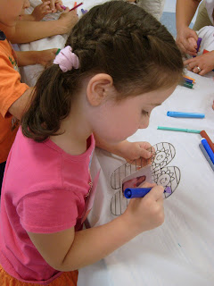 What a fun week! I never imagined that it would be possible for me to get myself and all four kids up, fed, ready, and out the door by 8:30a.m. by myself every morning for a week, but we did it! I'm so proud of us. :) Last year, I just dropped Dylan off at the church each morning and picked him up again at noon, but this year Caitlyn was old enough to participate, too. She was having some trouble with the thought of me leaving her, however, so I actually stayed each day and helped out with her group of four year olds. She was still a little reserved with the group games, but very much enjoyed the craft activities.And I just have to say how impressed I was with how well Meghan and Kristen behaved! Such little angels. I am not kidding! I figured out that the best arrangement was to have them both in the double stroller, and since the back seat folds down completely flat, Kristen, for the most part, just slept the entire time. I took her out to nurse her when she fussed, and then she'd go right back to sleep! Meghan was so cute, too, enjoying her little snacks just like the big kids, and playing with them on the playground equipment during break time. I'm so happy I was able to share this experience with my kids!